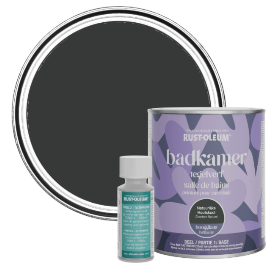 Geef je stenen, glazen of keramische badkamertegels een make-over met Rust-Oleum Badkamertegelverf in de kleur Houtskool. Meer kleuren via Bol.com beschikbaar!